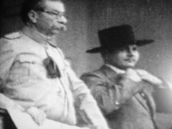 El Gral. Juan Vicente Gómez, Presidente de la República de Venezuela, en compañía de su hijo Florencio Gómez Núñez, el día de la inauguración de la Maestranza de Maracay. 20 de enero de 1933. (Archivo: Hnos. Dupouy Gómez).