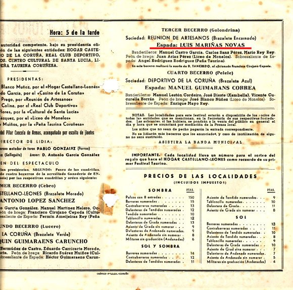 El cierre de la plaza de La Coruña en 1967 fue el momento más amargo de mi vida. Estuve cuatro años como ausente, hundido. Estuvimos 24 años sin toros lo que supuso que fuera desapareciendo la afición, no hubo relevo generacional. Nosotros, desde la peña, hicimos lo que pudimos. Incluso alquilamos una plaza portátil con la que estuvimos recorriendo Galicia diez años.